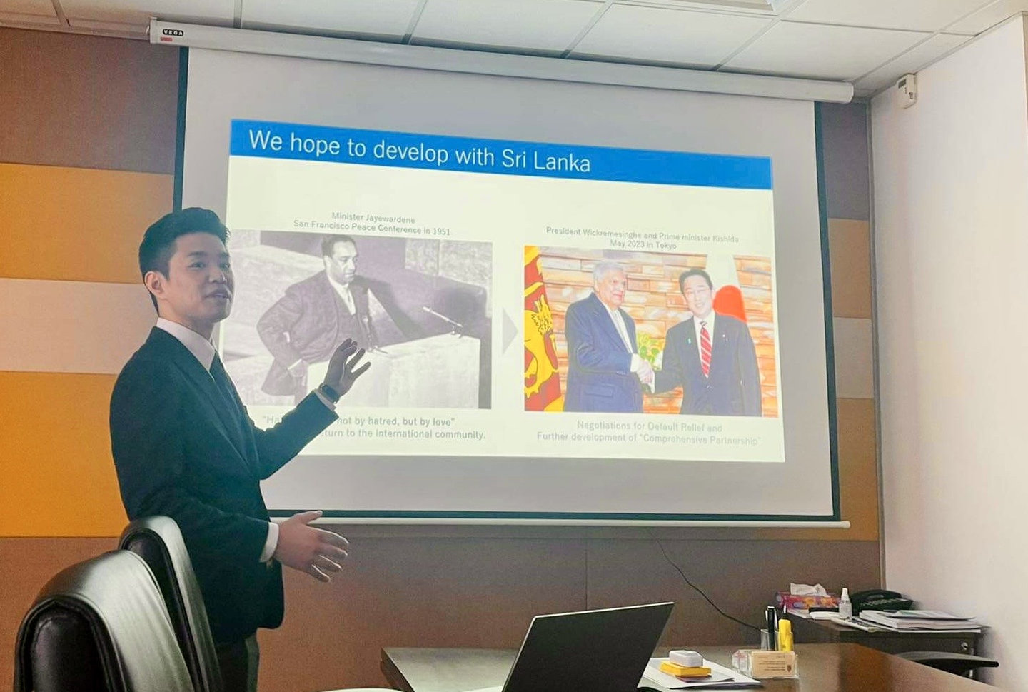 ↑大臣に向けて、スリランカにおける新たな取り組みのプレゼンを実施。バックアップの取り付けに成功