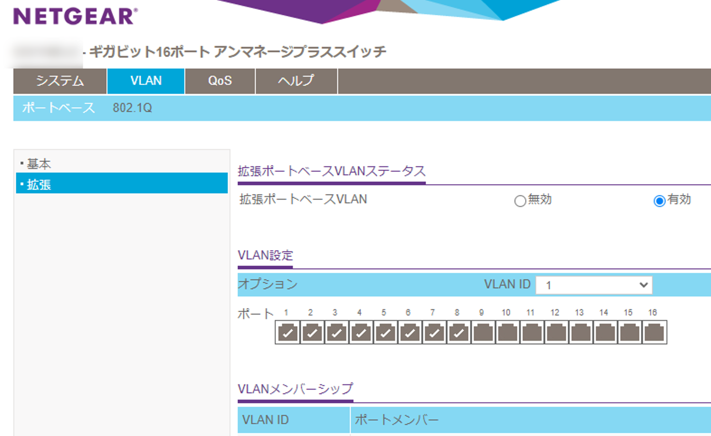 ポートベースのVLANはその名のとおり、スイッチングハブにささっているLANケーブルのポート番号によって「どのポートとどのポートは通信できる/できない」を設定するものです。分かりやすいですね。