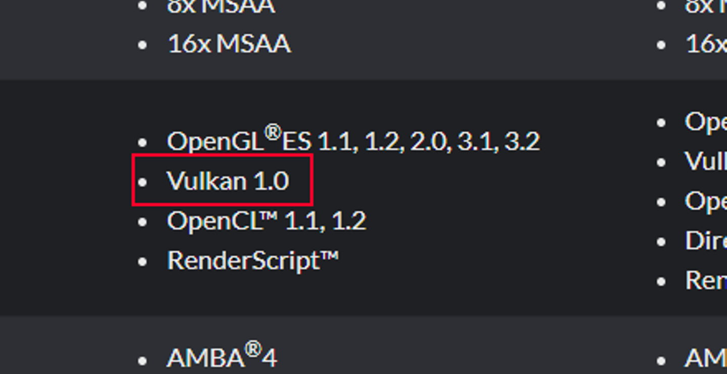 API Supportにありました、Vulkan 1.0って。見間違いじゃないよね?