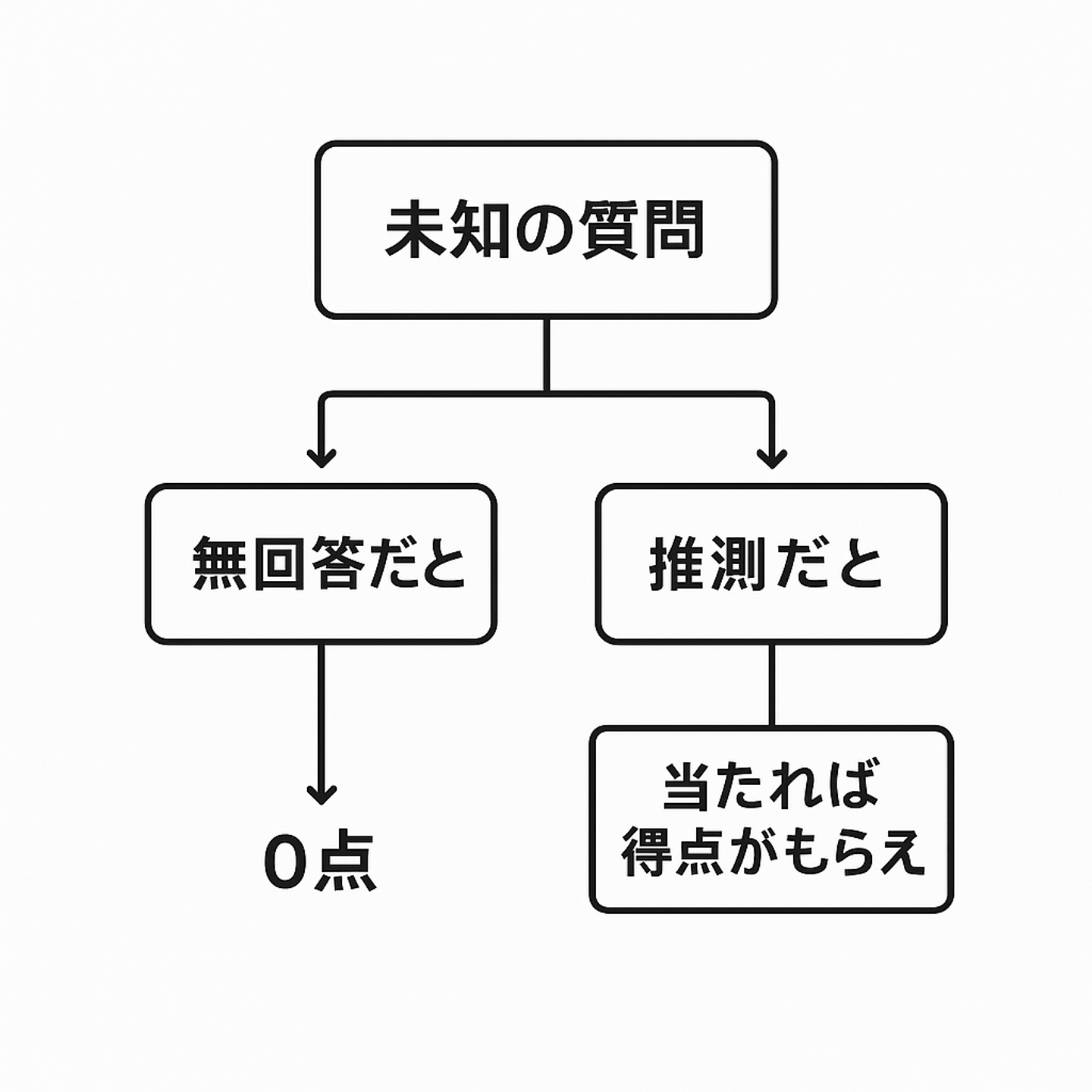 でも「分からないけどそれっぽいことを書く」と、当たれば点がもらえる。結果としてモデルは「分からなくても答える」方向に進化してしまうという点です。