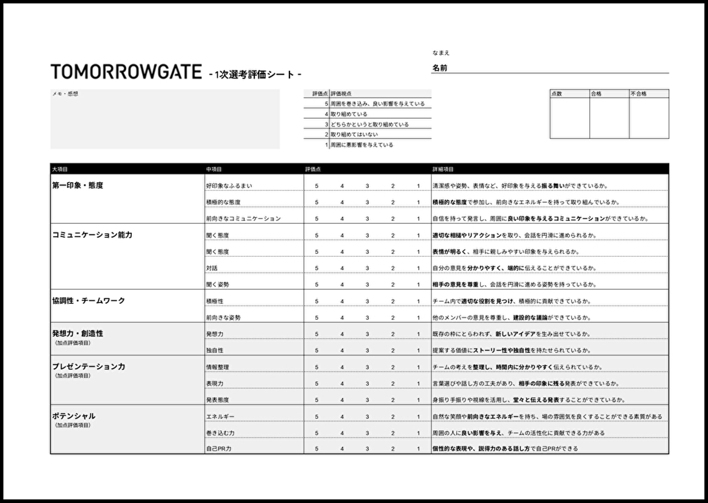 トゥモローゲートの選考では、「人」と「人」との真剣勝負が始まると私は思っています。