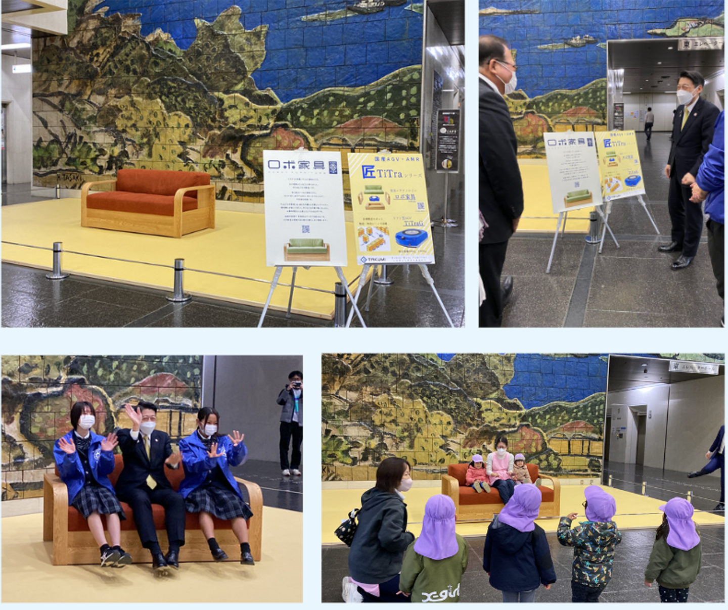 福岡県庁1階ロビーにて「ロボ家具」体験イベントがありました。服部知事も視察され、当社阿知波社長ともご挨拶。大川市の高校生やお散歩中の園児たちも興味津々!ロボ家具体験して頂きました。年末にご協力頂いた方々、ありがとうございます!