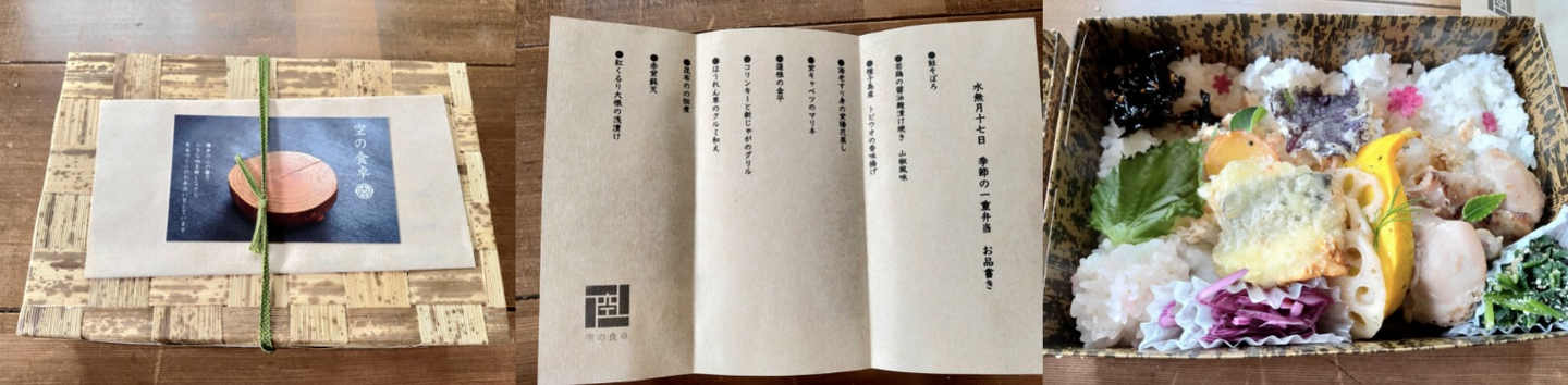 ランチは地元のお弁当屋さんにお願いして、季節の素材を使ったお弁当🍱をいただきました。