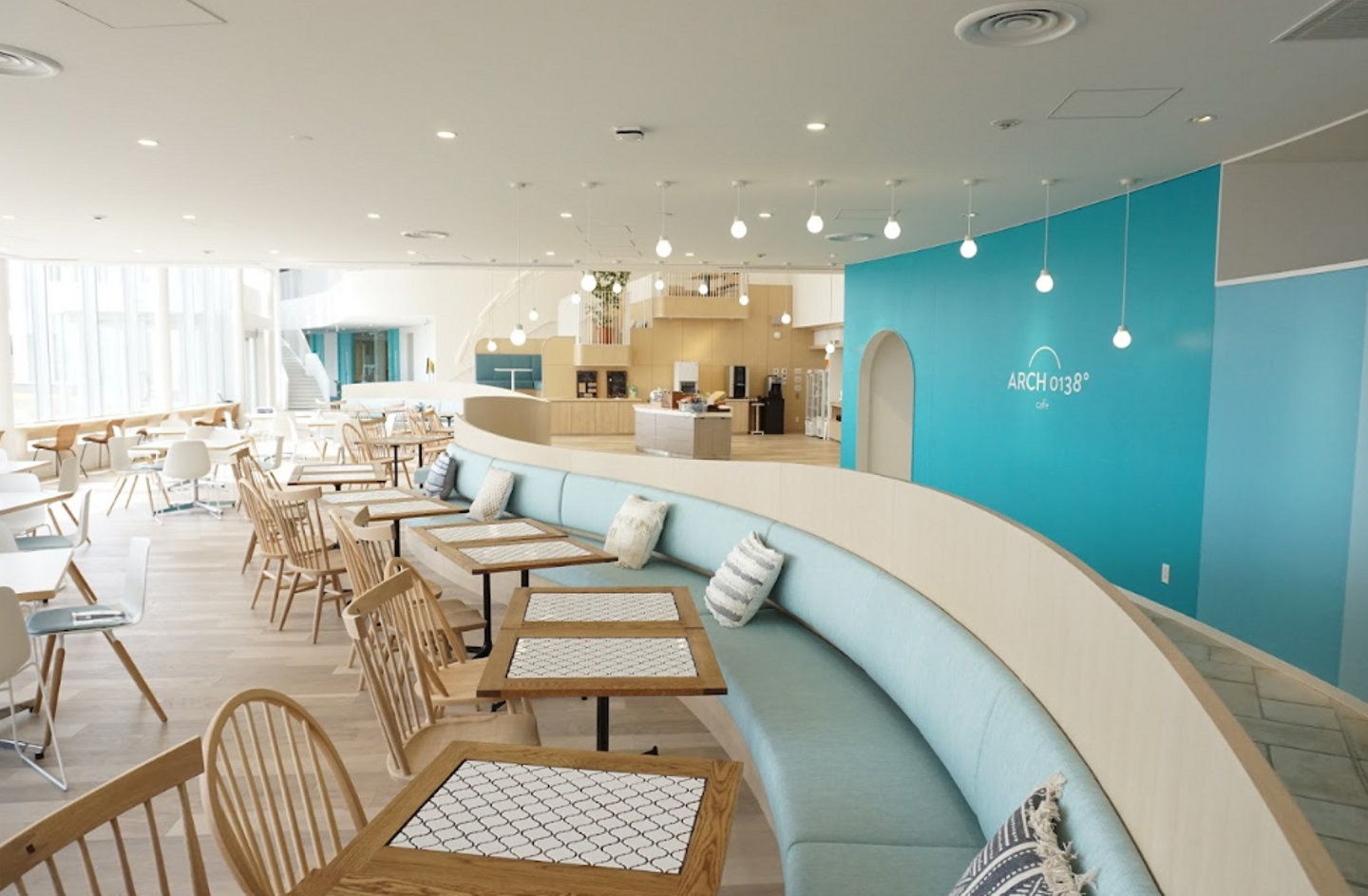 保育園の横には、ゆったりと明るいカフェテリアがあります