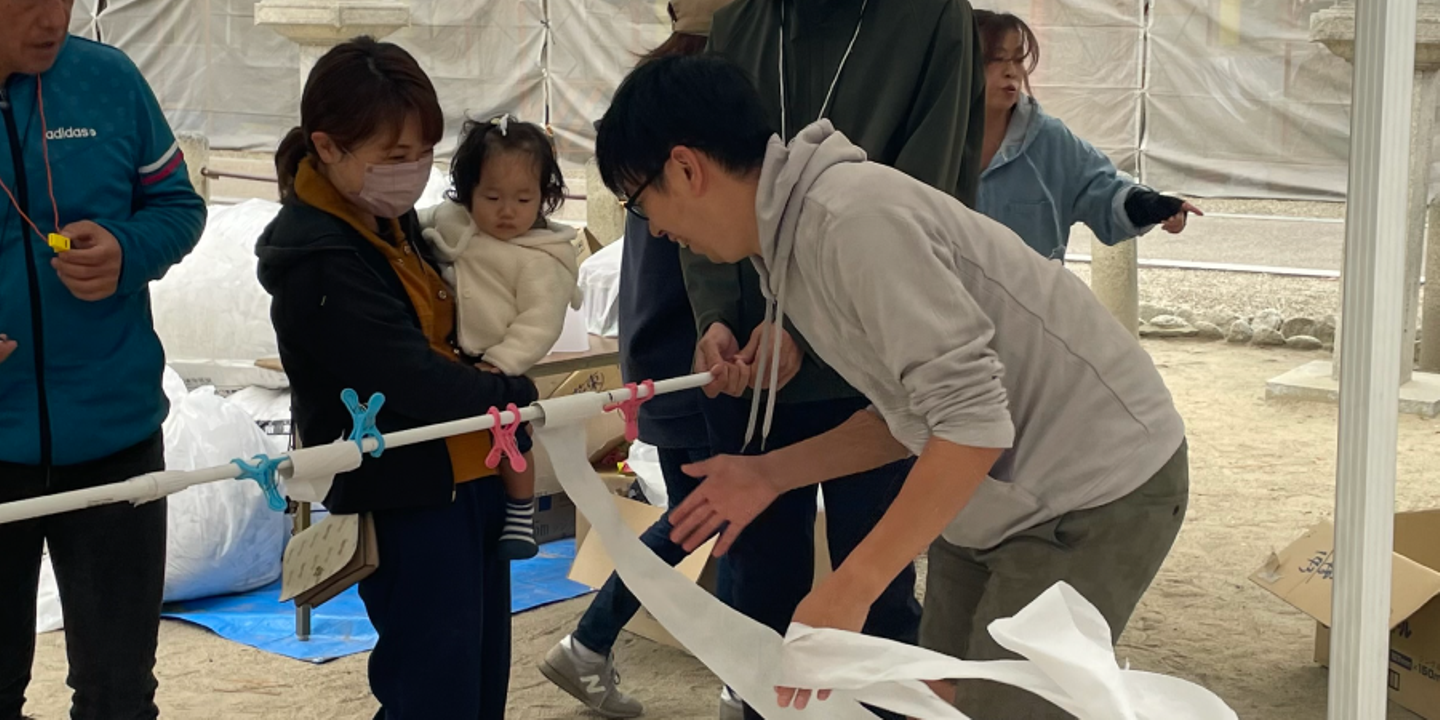 イベントに来られるのは小学生とその親御さん。出店にあたり、どんな方法が良いかアイディアだしをした結果、トイレットペーパーの巻取りなら楽しめるんじゃないか、との結論になりました。