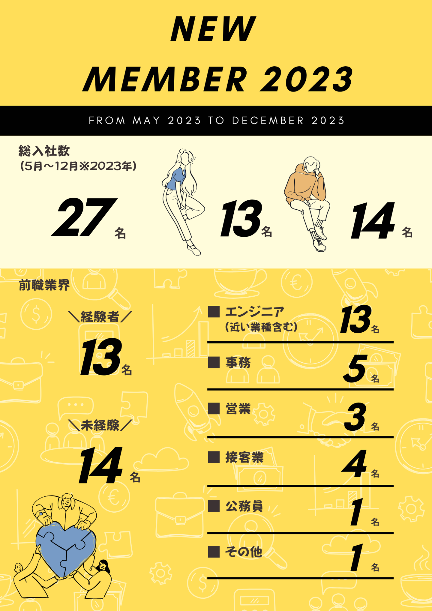 ネクストフィールド株式会社フォローhttps://nf-nextfield.com/recruit東京都フォローホーム私たちについてメンバーストーリー募集 From May 2023 to December 2023|27✶ Baba Saeko 広報 on 2025/01/08 2023年5月~2023年12月に入社した社員の統計をだしてみました🐝🌱💹 ネクストフィールド株式会社では一緒に働く仲間を募集しています From May 2023 to December 2023|27✶ Baba Saeko ネクストフィールド株式会社 / 広報 中途採用 エンジニア 未経験 中途入社 社外報 1 いいね! シェア 1 いいね!