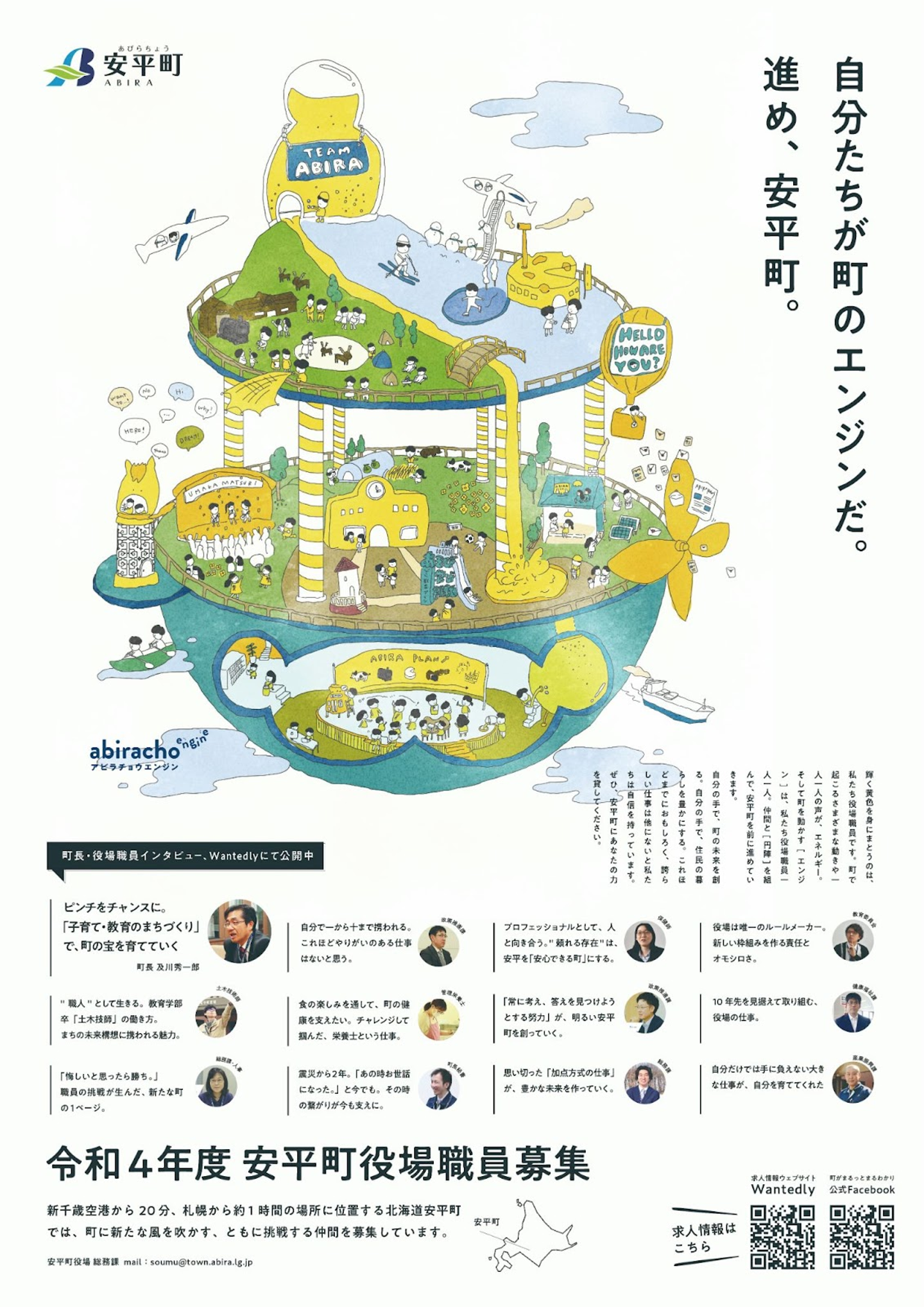 ↑昨年度までのポスターは町民や職員の活躍をモチーフに落とし込んだ「アビラチョウエンジン」のロゴを全面に出していました。