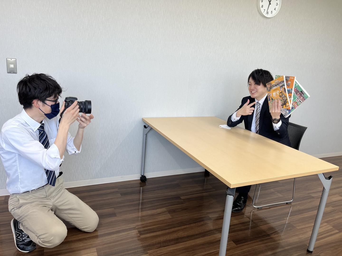 モデルとなった職員も初めは緊張している様子でしたが、雑談を交えながらポーズをとったり、普段使っている仕事道具を使って撮影しているうちに少しずつ柔らかな表情となり、笑い声も出て賑やかな時間となりました。