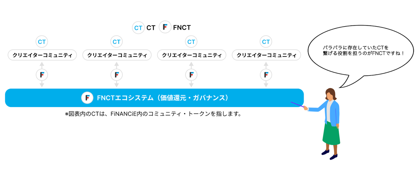 FNCTを活用して、CTを横串で通し繋げることで、トークンの価値を長期的に向上させ、ユーザー主体の運営を実現したいと考えています。