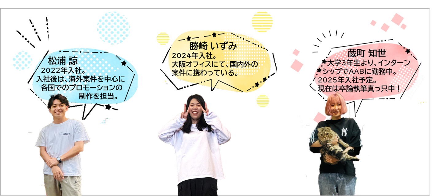 イベント業界やAABのことが少しでも気になった方、企画の仕事に興味のある方、挑戦してみたいと思う方は、ぜひお気軽にコンタクトしてください。