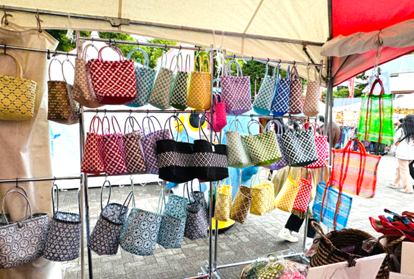 Kho Vietnamブースでは、池袋に引き続き、色とりどり・大きさ様々なカゴバッグを取り揃え販売いたしました。土曜日は雨がずっと降ったりやんだりのあいにくの天気でしたが、そんな雨空を明るくするようなカラフルな商品を取り揃えて販売いたしました!