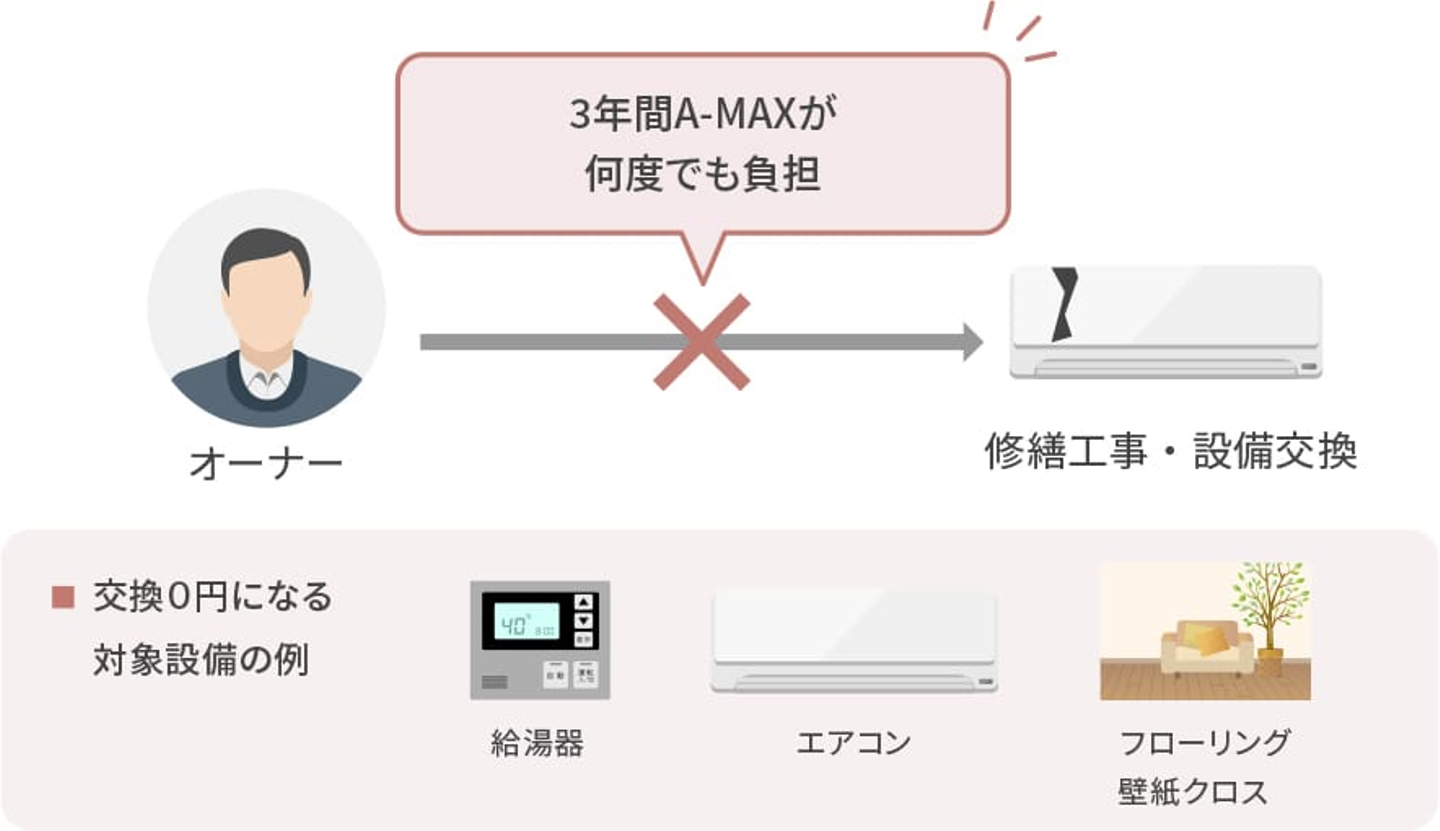 ・3年間の設備等の無料保証(設備交換、内装工事費 等)
