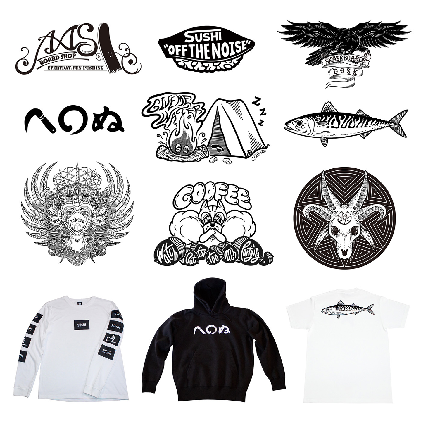 写真②)染谷さんがこれまでに制作したグラフィックやアパレル