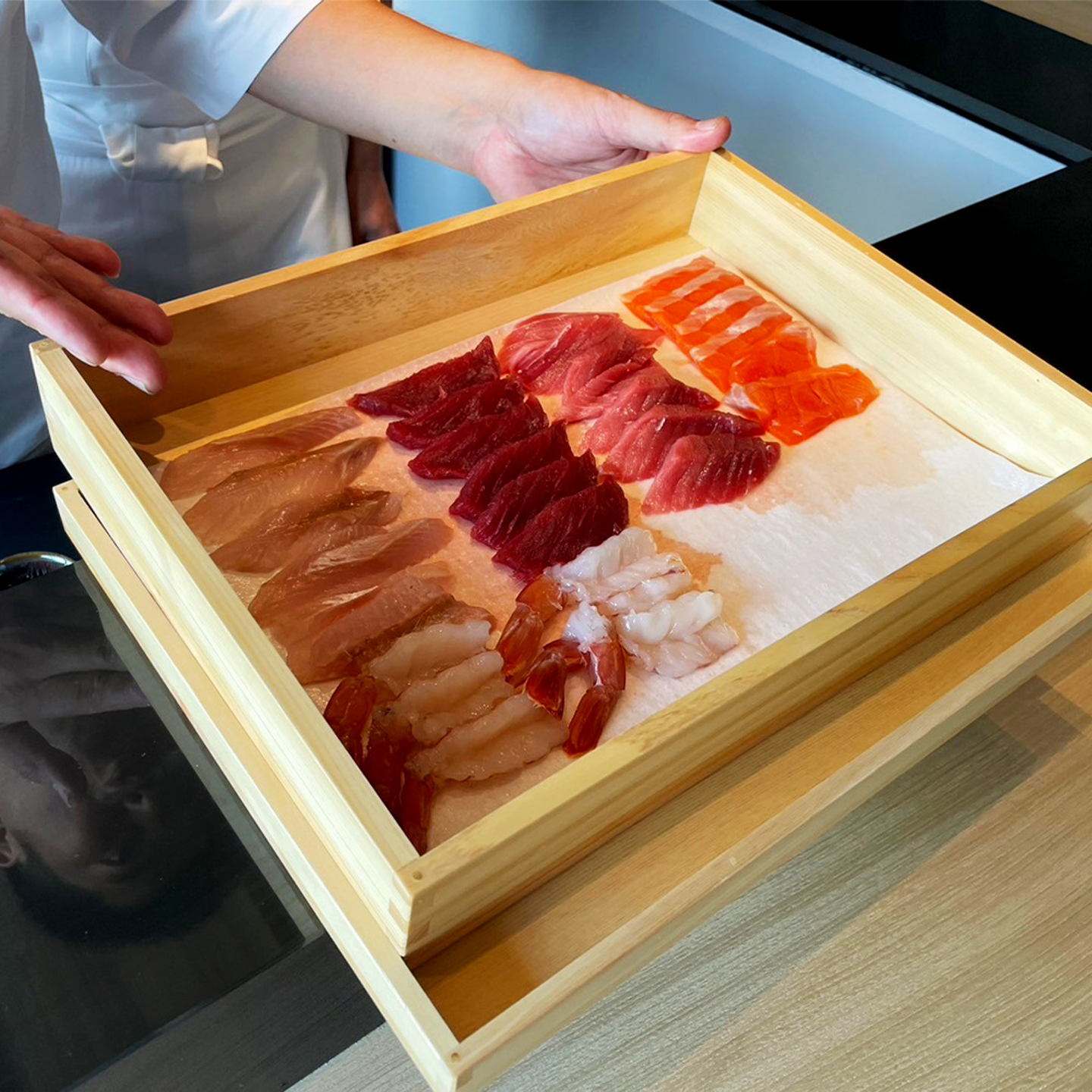鮨奥ノでは、特別な輸送技術と各地の漁師さんたちとのネットワークを活かし、そうした地魚を美味しいお鮨としてご提供したいと考えています。その1カンは、獲れた魚を無駄にしないサステナブルな食のあり方、フードロス対策にも直結するはずです。
