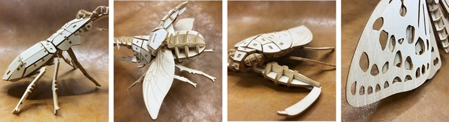 これは第四弾のポケバグ。特にこだわっているのが、パズルの焼き加減で表現する模様です。パッと見たときのリアルさを左右する重要な部分なので、チームメンバーと話し合いながら、どんな模様がいいか決めました。それから、虫のフォルムも丁寧に再現しています。特に、「コノハムシ」の胴体がお気に入り。お腹のパーツを細かく組み合わせて湾曲させています。