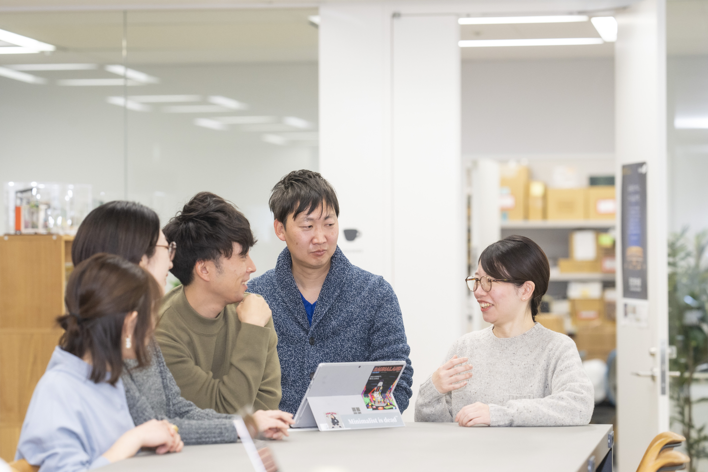 美大卒業後、インハウスや広告制作会社、フリーランスデザイナーとして経験を積んでいく中で、納品して完結してしまうことになんとなく物足りなさを感じていました。そこで商品の企画・開発からデザインに至るまで全ての業務に携われるプラザクリエイトの募集を見つけて応募したのがきっかけです。一次面接がとても和やかな雰囲気で「この人たちと一緒に働きたいな」と思ったのも決め手の一つ。ちなみに、面接してくれたその方は、現在の上司となりました!