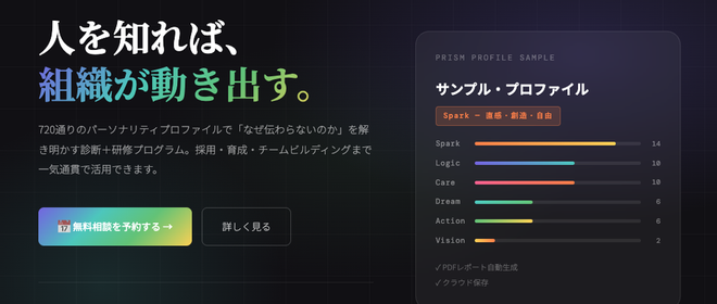 はじめまして。株式会社and1 代表の曽我ジョワードです。私が代表を務める株式会社and1では、複数事業を展開しておりますがパーソナリティ診断+研修プログラム「PRISM」を開発・提供しています。PRISM(https://prismlp0.netlify.app/)は、人それぞれの"伝わり方"や"動き方"の違いを可視化し、採用・育成・チームビルディングに活かすためのサービスです。今回は、私がなぜPRISMをつくったのか、その背景にある経験をお話しさせてください。少し長くなりますが、最後まで読んでいただけると嬉しいです。■ 忘れられない経験あれは、RPO(社外採用担当)として働いて3年目...
