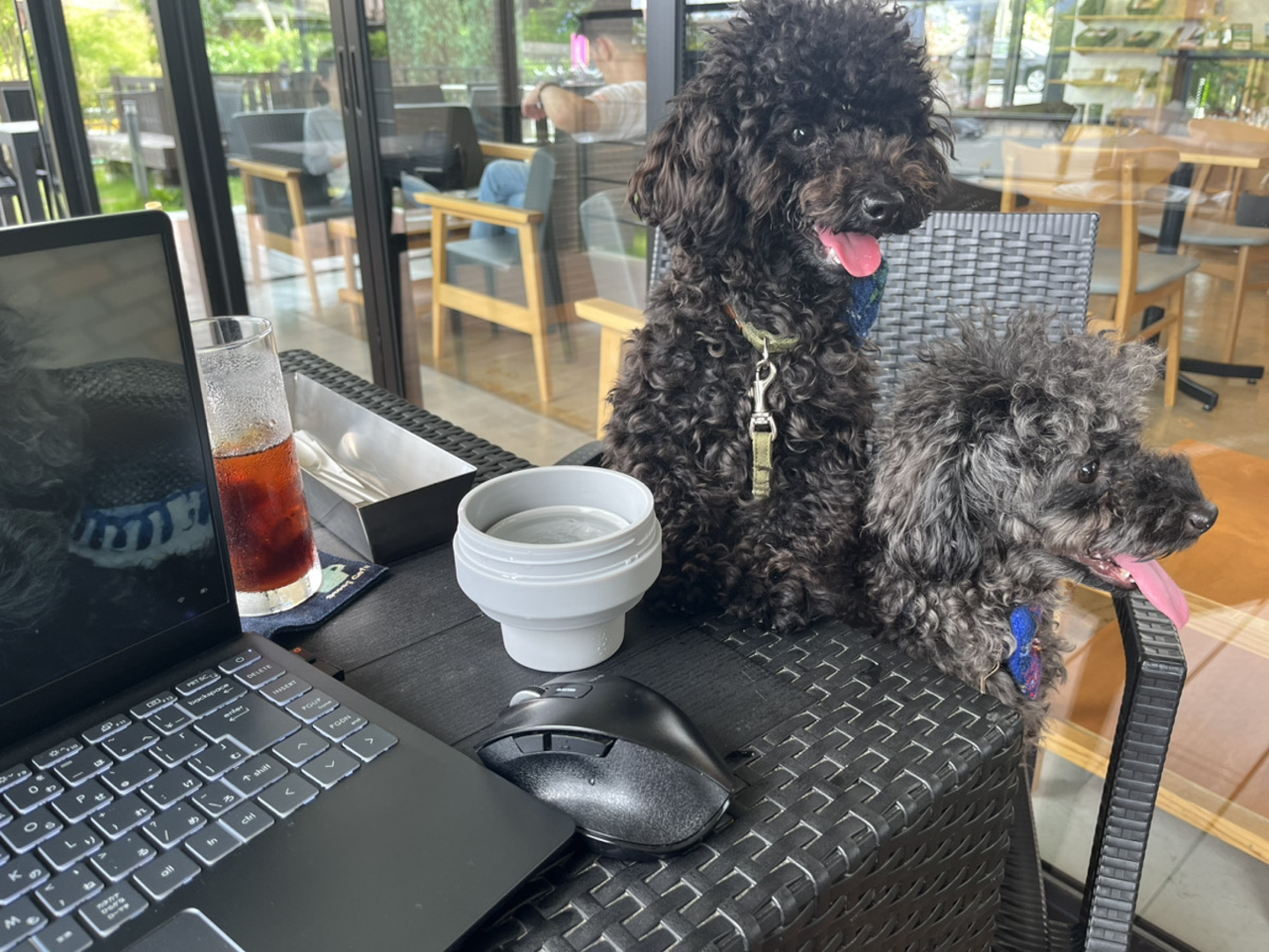 ▴カフェで愛犬と仕事することも…❤ 会社近くにも犬OKのカフェがあるのだとか!