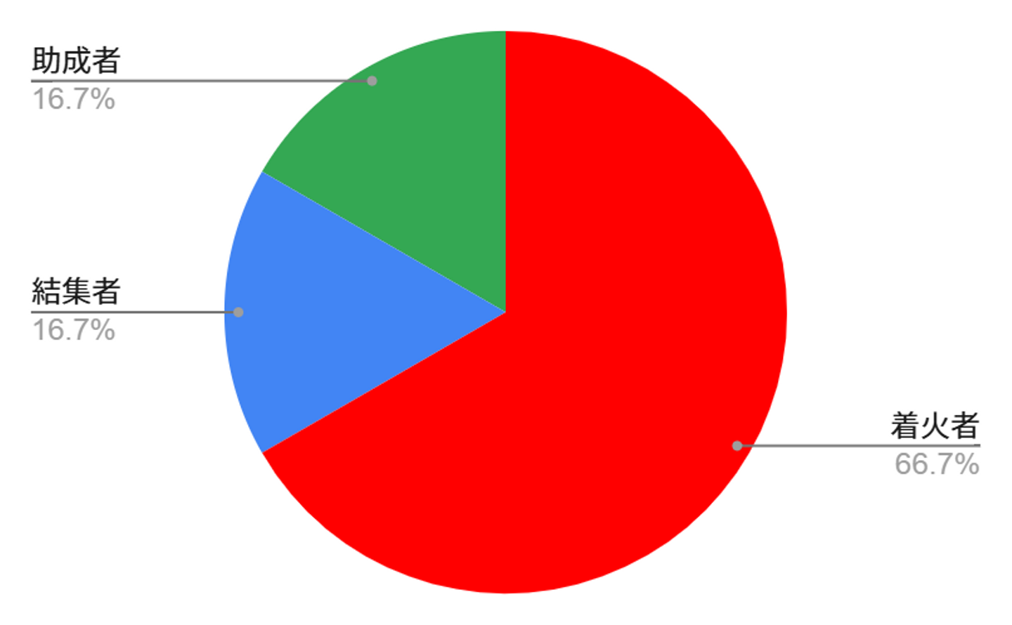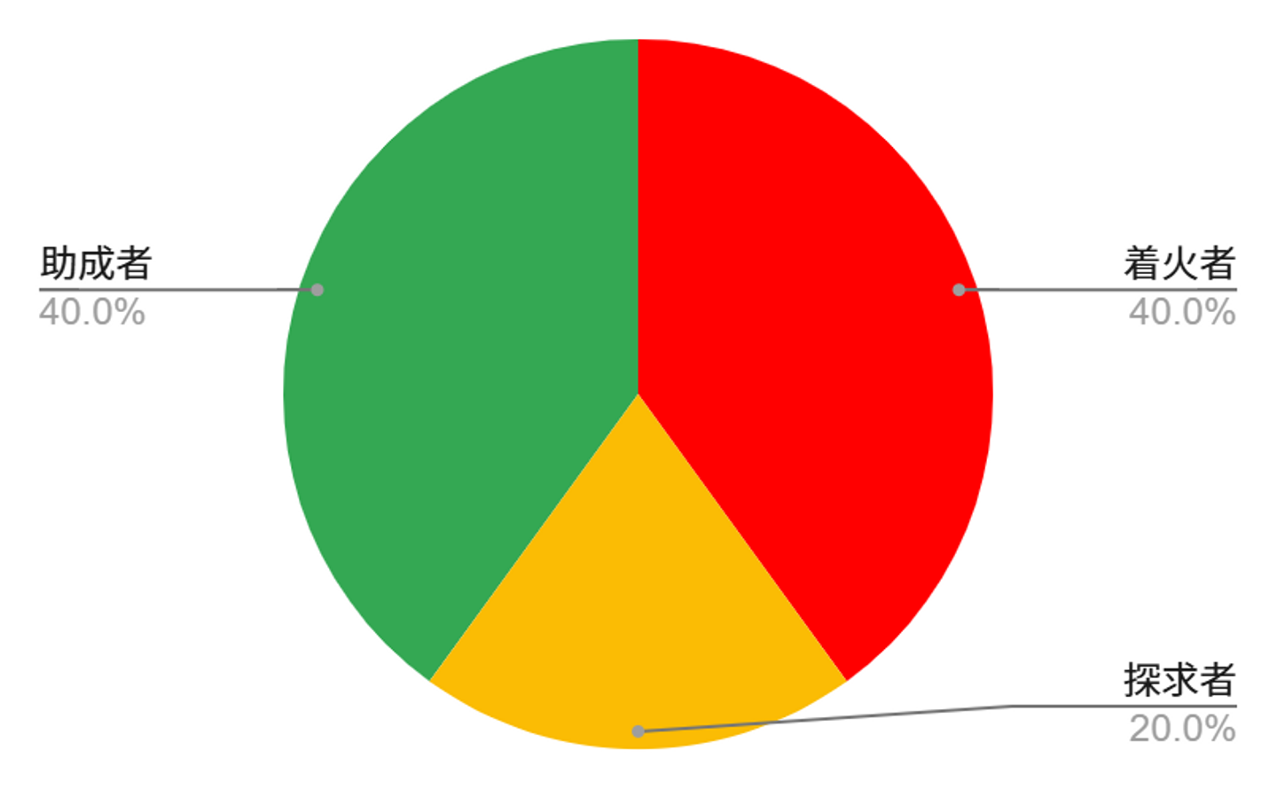 着火者(決断力でチームを導くリーダー)が約7割!!ものすごい比率!!笑