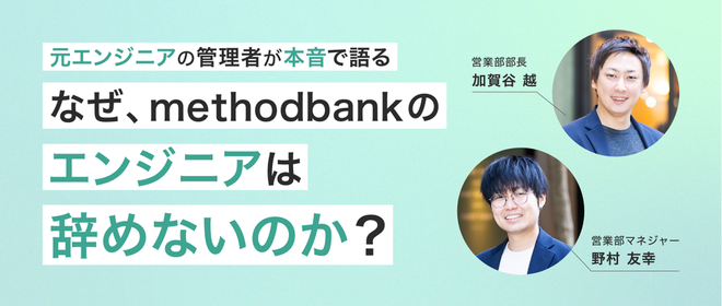 methodbank株式会社、代表取締役の菊地原と申します。私は、20代後半で異業種からITエンジニアに転職し、その後、IT(受託、SES)営業→スタートアップ...さらに表示