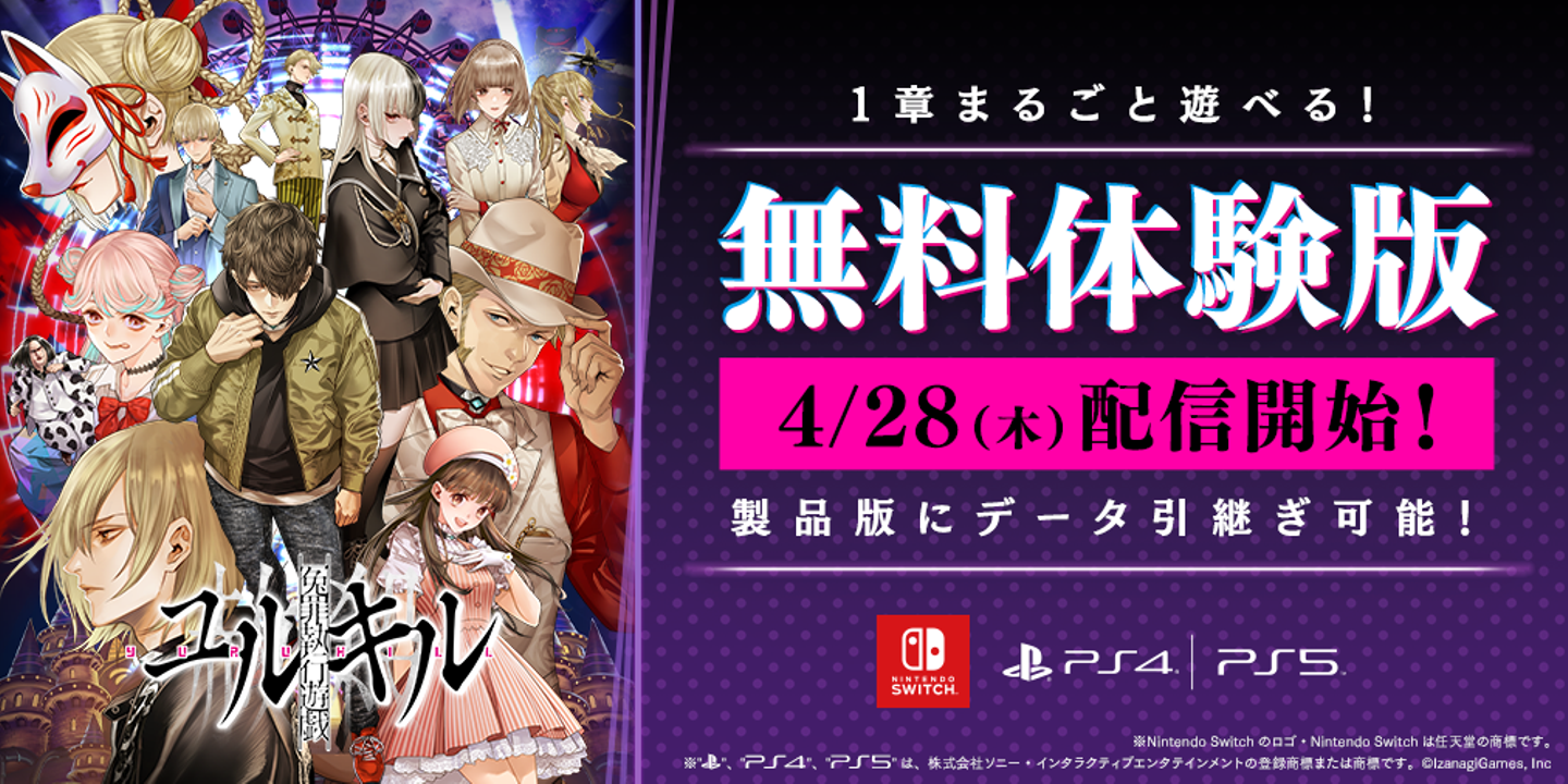 株式会社イザナギゲームズ(東京都江東区、プロデューサー兼CEO:梅田慎介)は、賭ケグルイの河本ほむら・武野光が原作とシナリオを、 シューティングパートの開発をグレフが担当する、冤罪脱出ADV&弾幕STG「冤罪執行遊戯ユルキル」の無料体験版を、Nintendo Switch™️、PS4®、PS5®にて2022年4月28日に配信開始することを発表いたしました。