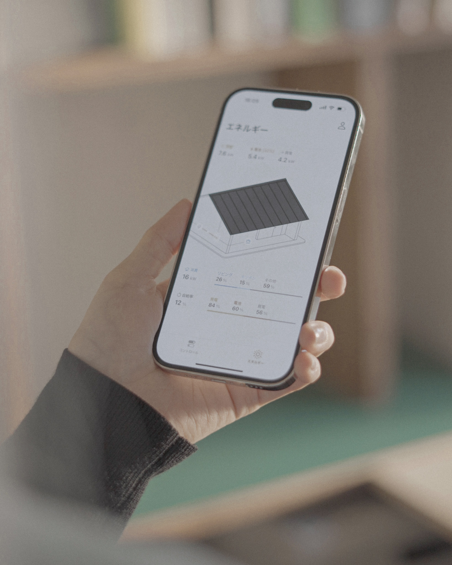 Roof-1で発電した電力に加えて、家のどこで、どれくらいの電力が使用されているかを独自のスマートフォンアプリで簡単に把握することが可能になりました。エネルギーの発電から消費までがワンストップで見える化することで、効果的なエネルギー利用が可能になります。