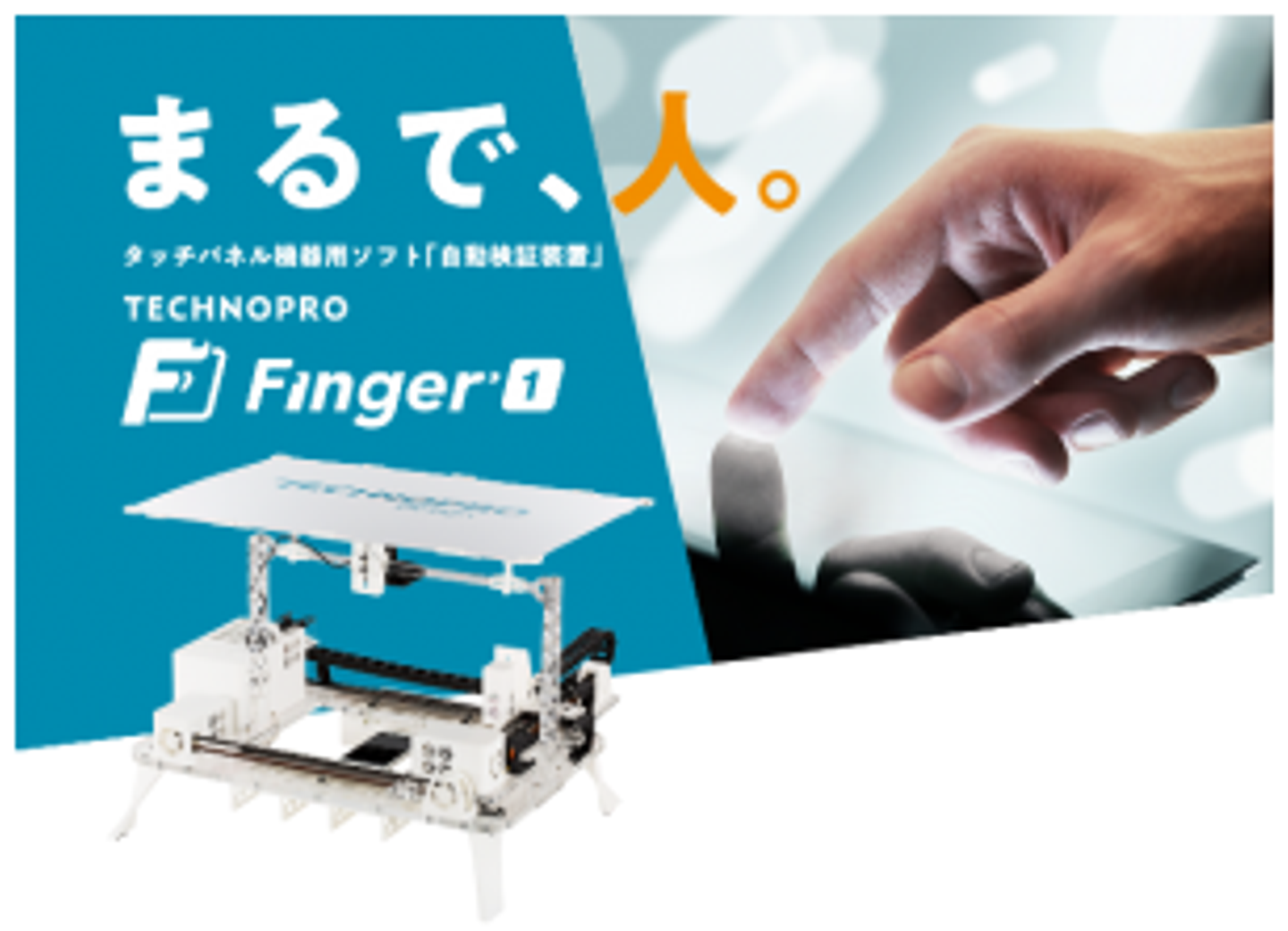 Finger1とは、テクノプロ・デザイン社が独自開発した検査機器で、タッチパネル機器のソフトウェアが設計とおりの動作か否かを画像認識により自動検証する機器で、まるで人が操作しているようにタップ・ドラッグ・スワイプ・フリック・長押しなどの各種の画面操作が可能。検査対象としては、スマートフォン、タブレット端末、カーナビケーション、デジタルカメラなど応用範囲は広く、多くの開発現場で活用されています。