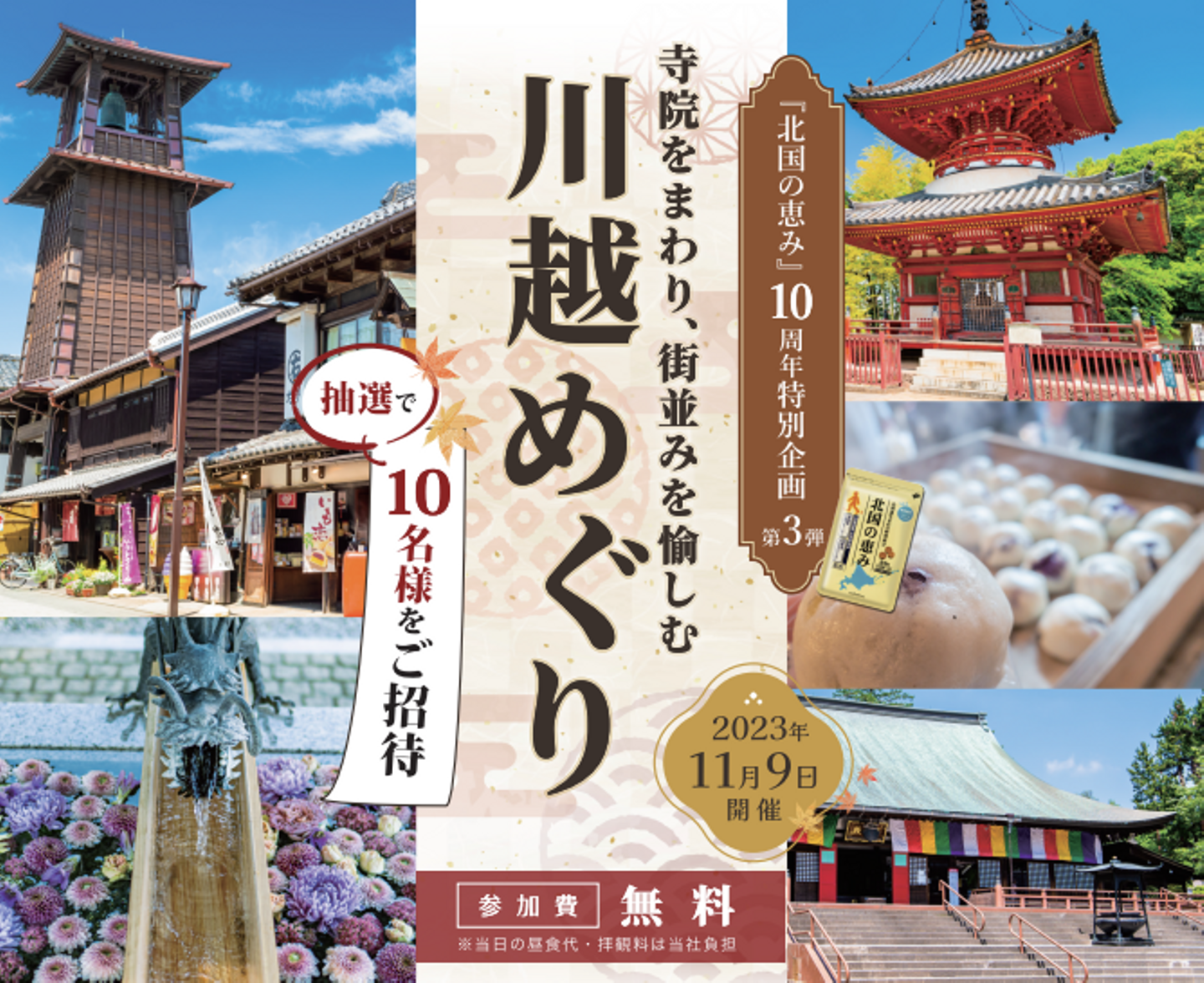 昼食は、100年以上続く老舗「寿庵」にて川越名物の抹茶そばをいただきました。『北国の恵み』という共通点があるおかげか、お客様同士で会話が弾み、とても楽しい時間になりました!