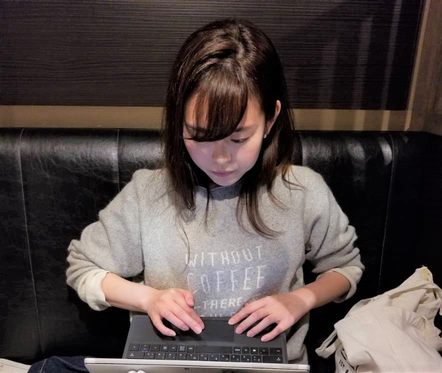 私は、こんな感じで夜な夜なレポートを作成📚 *トップスはうちの会社の商品です(宣伝)