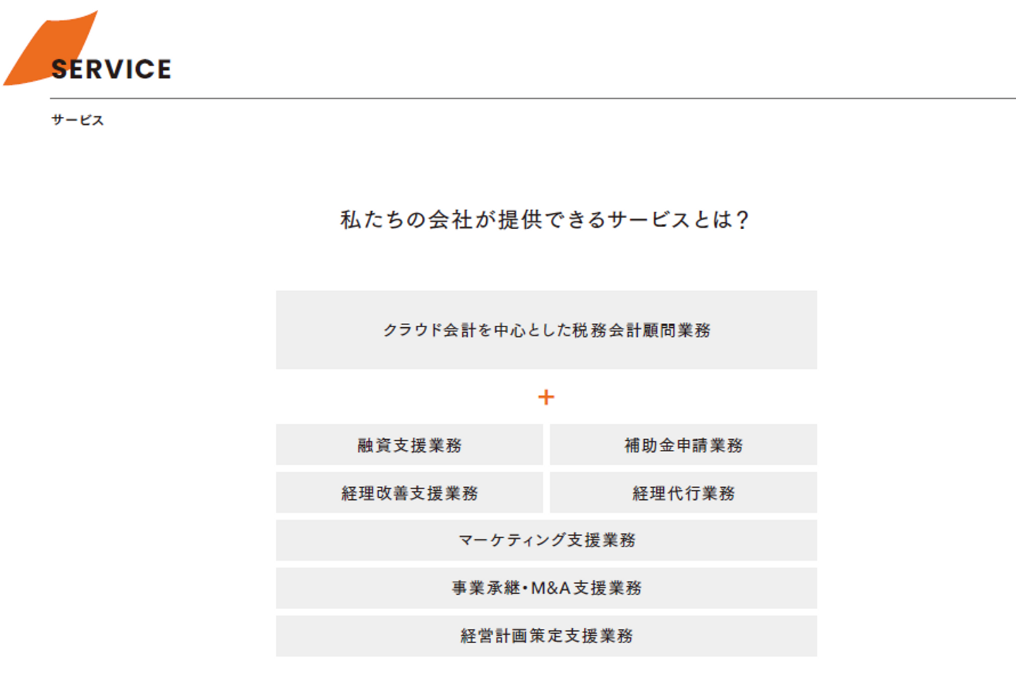 融資・補助金などの資金調達サポート、マーケティング支援など今までの税理士が行ってこなかった領域のサービスを展開しています。