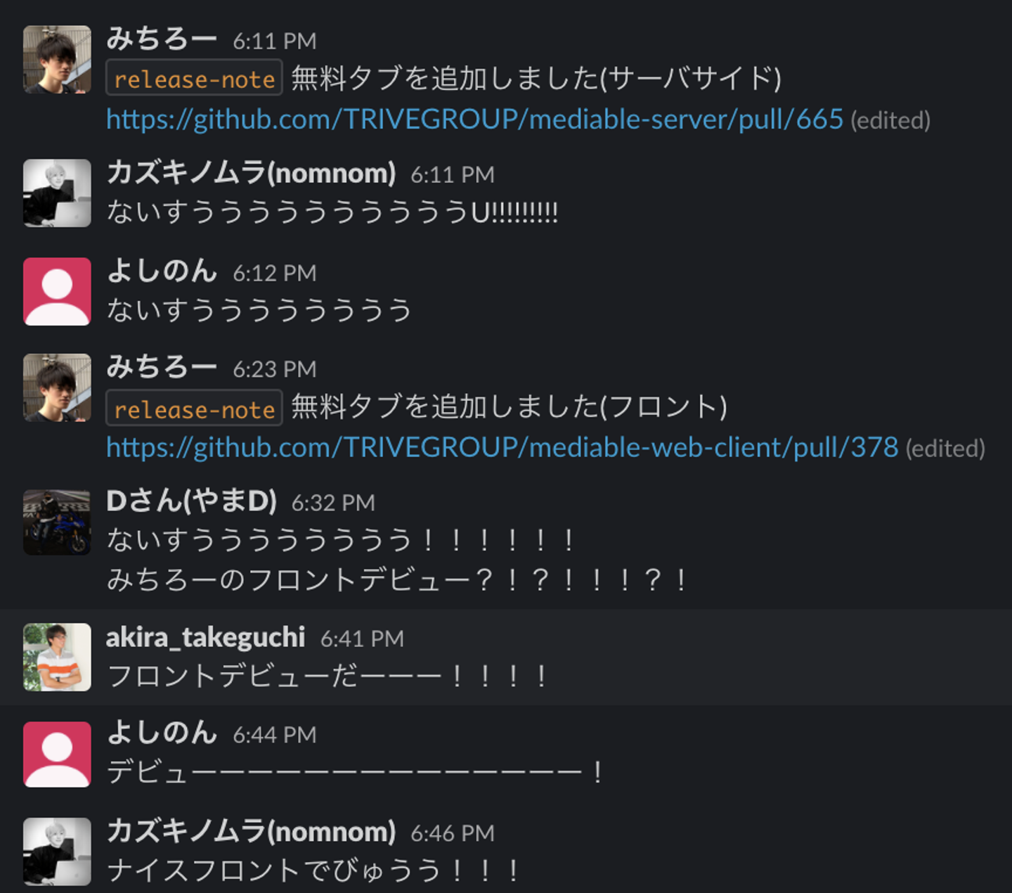 何か機能をリリースし報告すると社内で拍手が起こるなど、認めてもらえる文化があり頑張って良かったなと毎回実感できます。