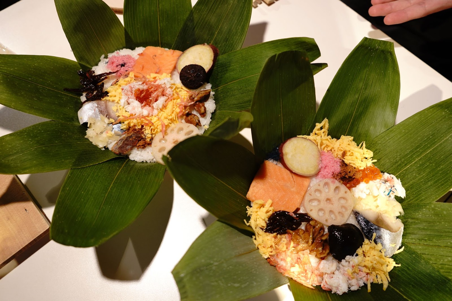 お店の方に教えていただきながらわっぱに笹の葉と酢飯を詰めたら、ここからは自由に具材を乗せていきます。二人とも夢中になるあまり、無言で乗せていました(笑)年齢を重ねるごとに、こういった『何かをつくる』機会は減っていくような気がしてとても貴重な体験でした。自分でつくるって楽しいですね!