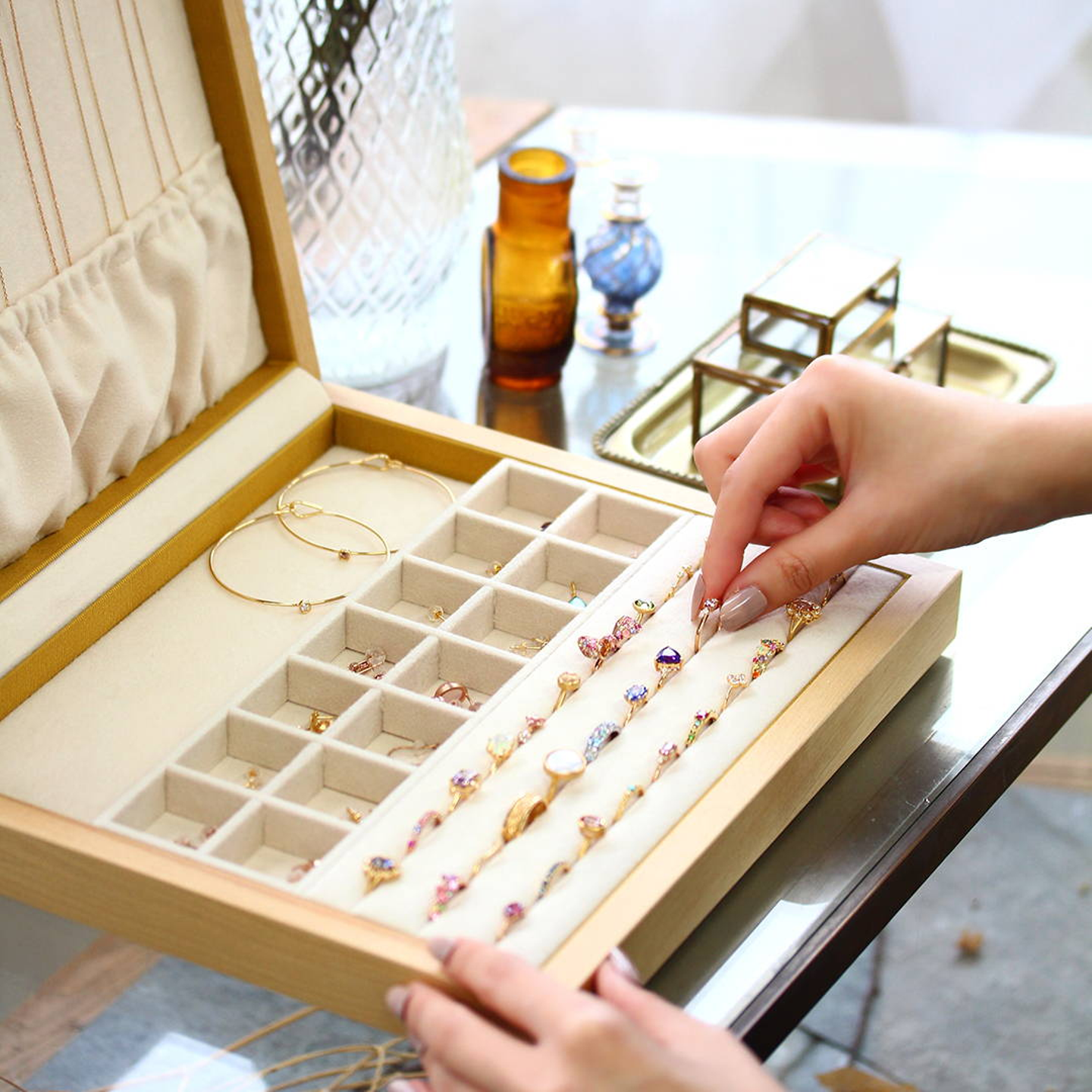 ジュエリーをもっと永く、楽しく使ってもらいたい・・ ジュエリーが大好きなお母さんへ、かわいい収納アイテムを贈るのも◎。 ジュエリーをボックスに並べる楽しさも今ならうんと味わえるし、外出先で外したジュエリーを入れられるポーチも、重宝すること間違いなしです。