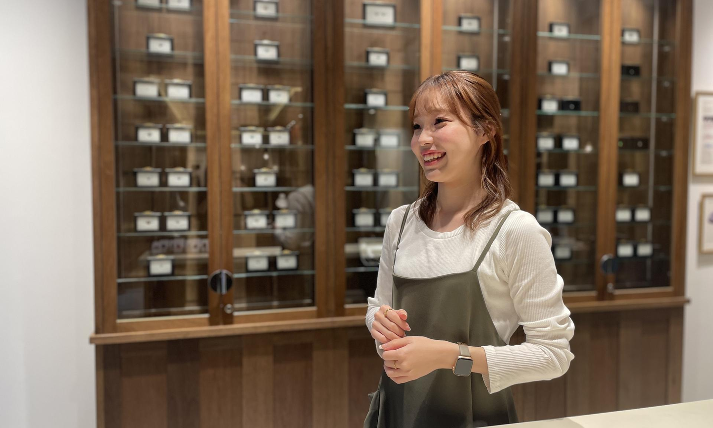 実際に働いていて、これから勉強するところもたくさんあるので、最初はお客様と話すときはちょっと自信がなくて、まだ勉強途中の身でお客様と話していていいのかなとも思っていました。しかし、接客している中で、商品のことだけについて話すのではなく、お客様がどういう目的や気持ちで来てくれたのか、プライベートのお話も含めて、会話を楽しむ時間でもあるのだなと気がつきました。