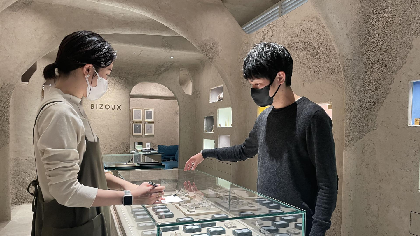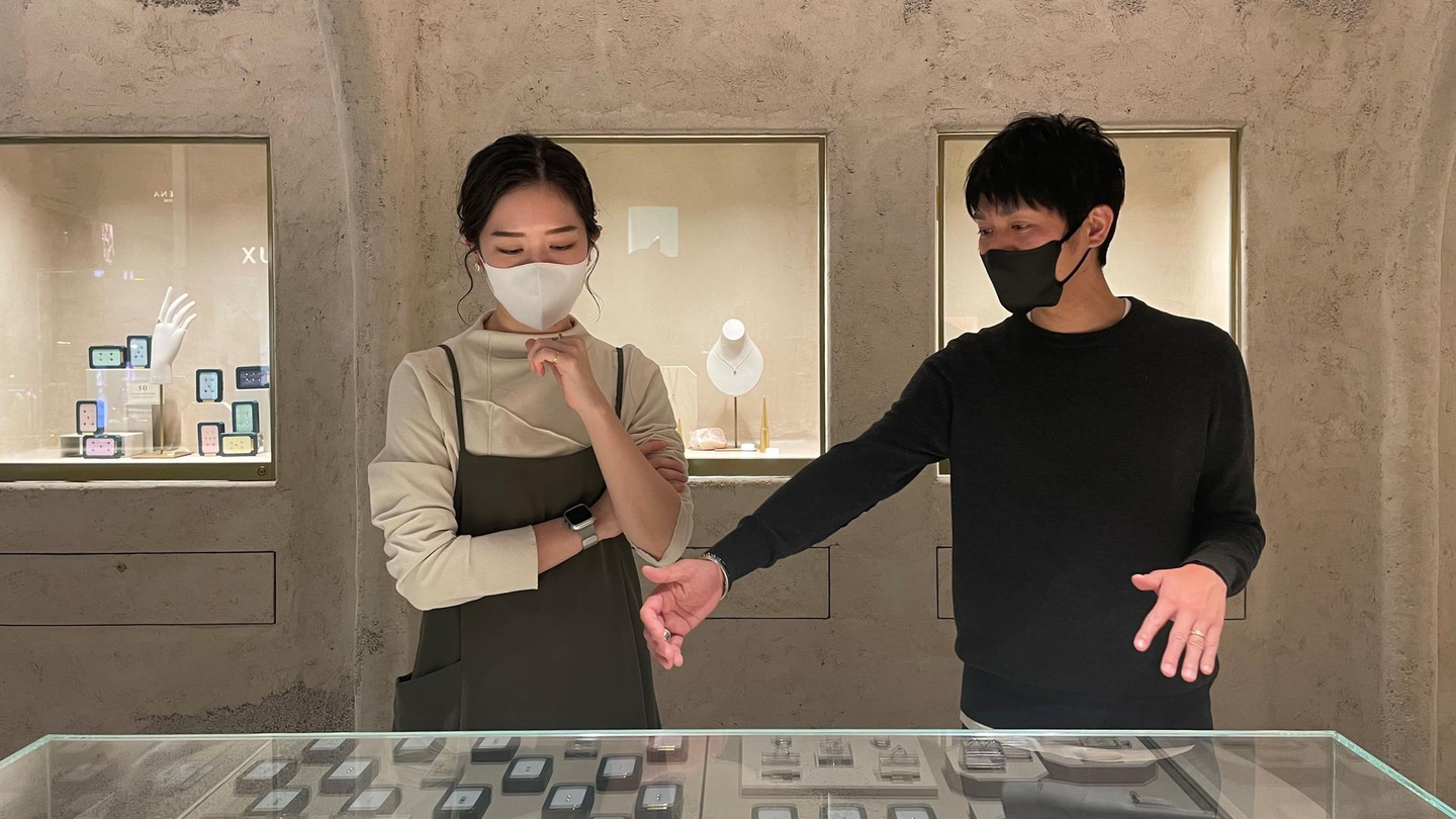 一番初めに行った店舗では、実際に接客を受けました。一生懸命説明をしてくれたなっていうのを、今でもすごく覚えています。「この人は宝石、ジュエリーが好きなんだな」と、とてもジュエリーに対する気持ちが伝わってきました。しかし、その反面、正直なところ接客に関しては荒々しさも感じました。10年以上販売職にも携わってきた身からすると、もっとこうすればよくなるな、とそういった面で伸びしろしか感じないなと思いましたね。