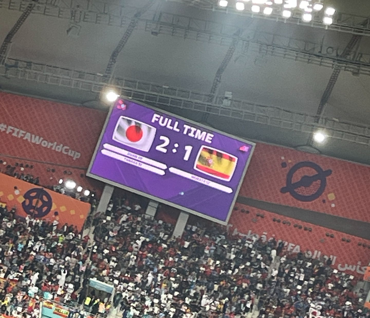2戦目の対コスタリカと3戦目の対スペインの2試合です。1戦目の対ドイツ戦は、前泊した東京のホテルで観戦しました。