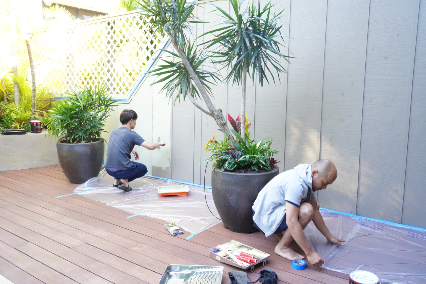 ペンキ塗り・壁紙交換・プールの塩素除去・床のカラーリングに絨毯交換。