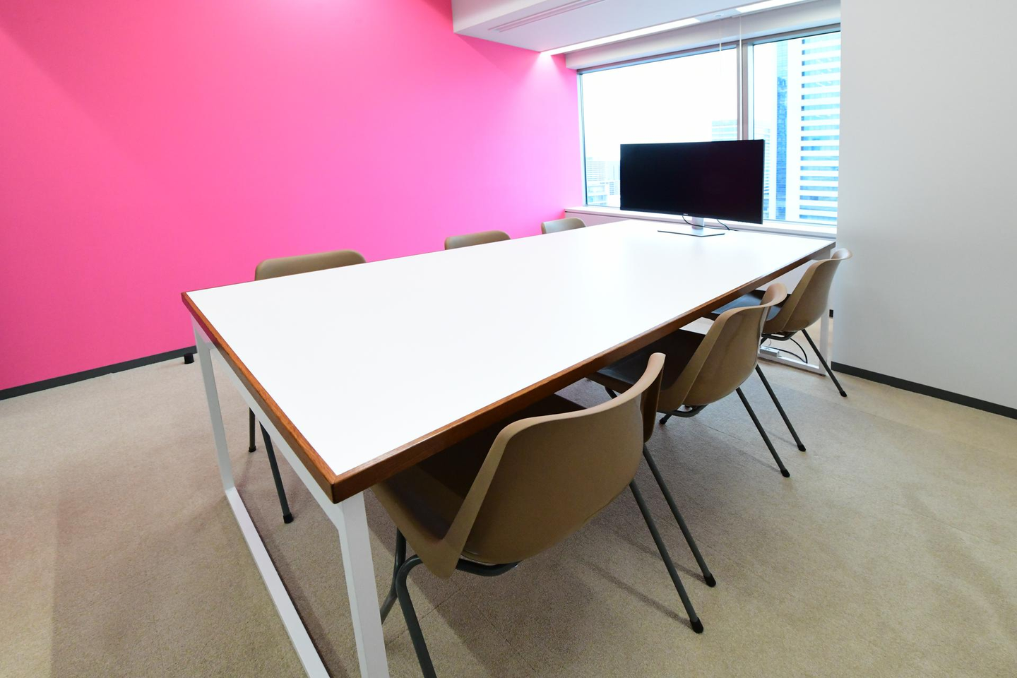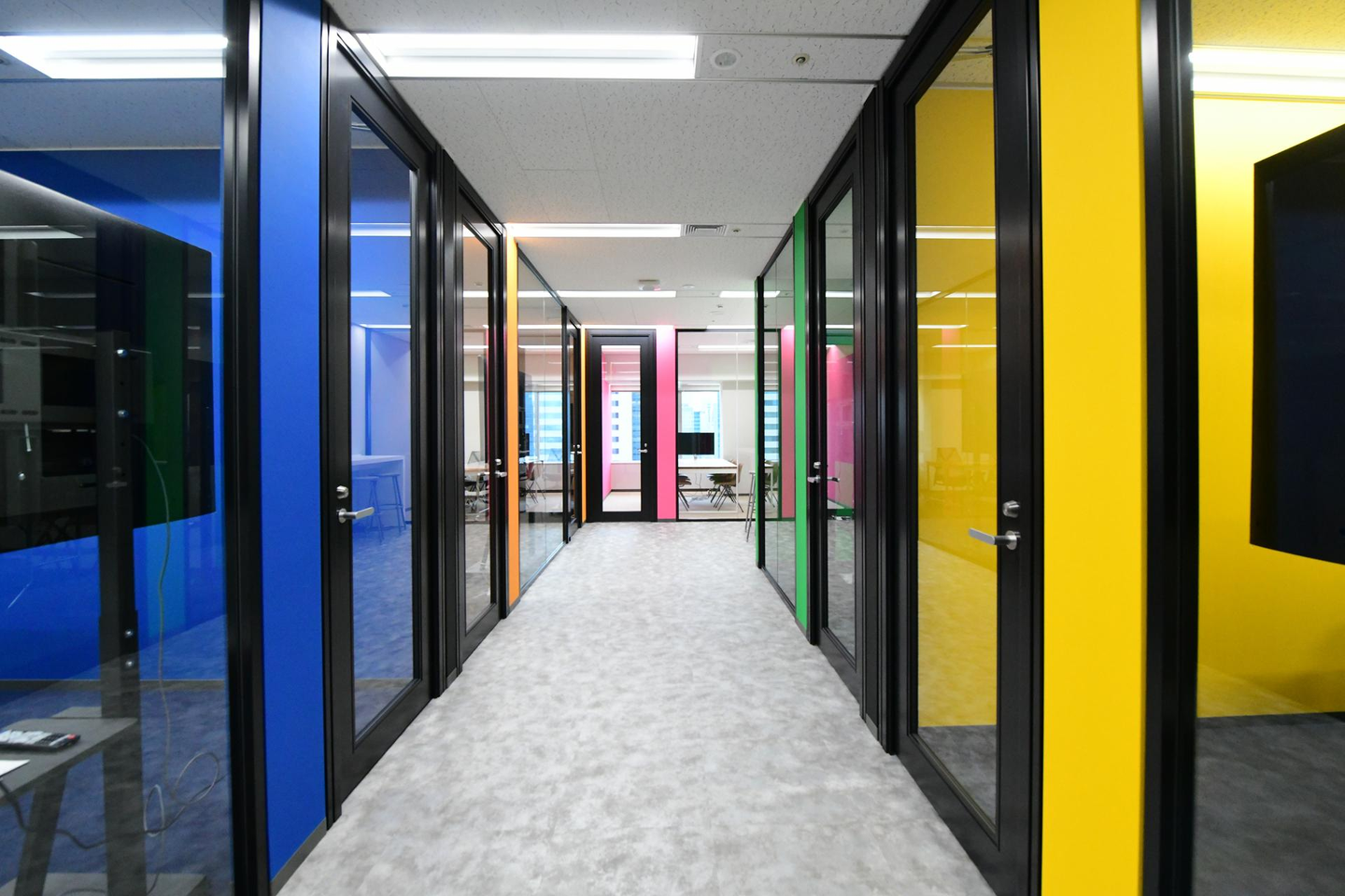 新しい会議室はそれぞれの壁のカラーが異なり、ポップな印象を与えてくれます!