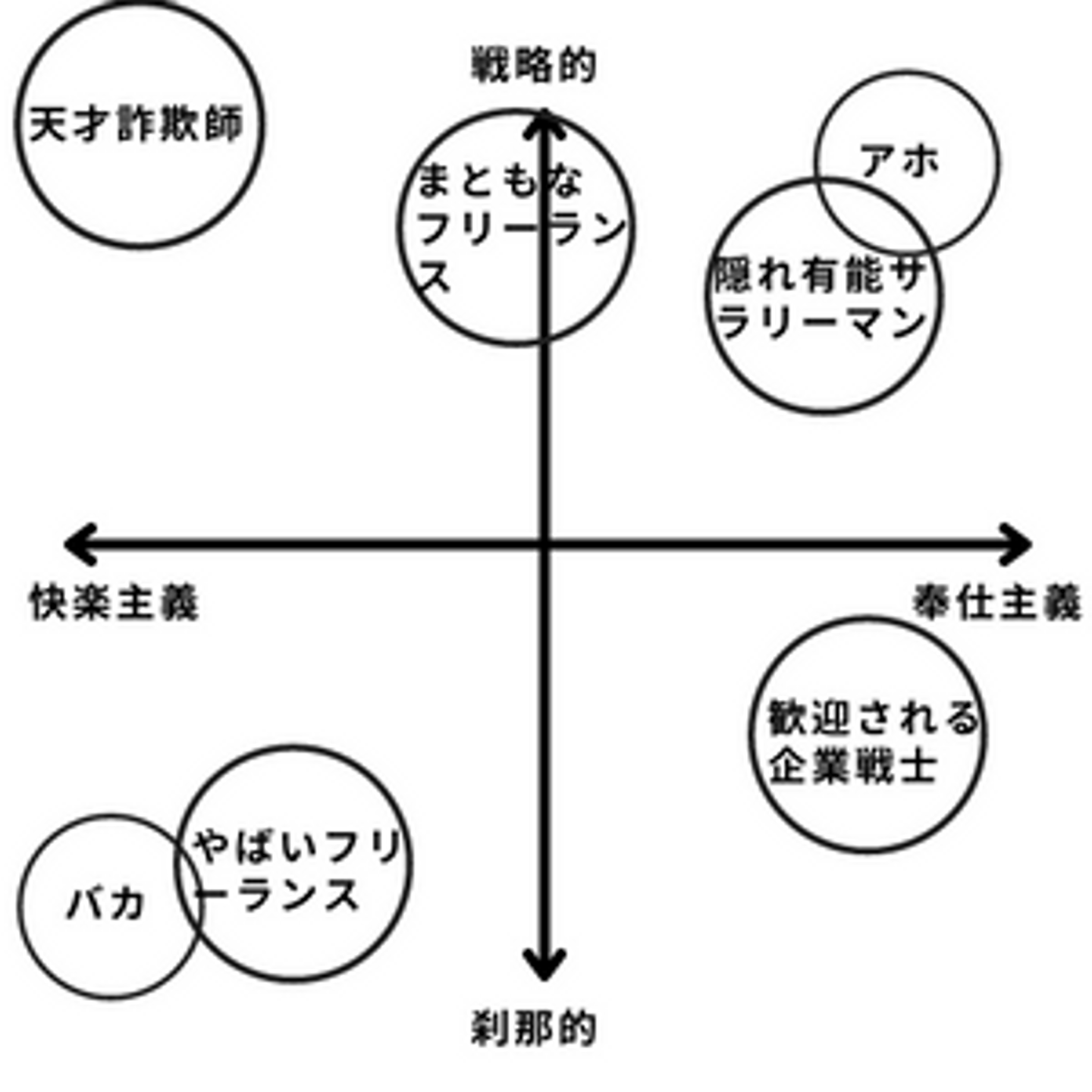 まともなフリーランスは頭の回転を活かした戦略性で物欲も自己承認欲求も比較的高い水準で満たせる可能性があります。有能サラリーマン並みの承認欲求は難しいかもしれませんが、割と稼ぐ人が多いです。