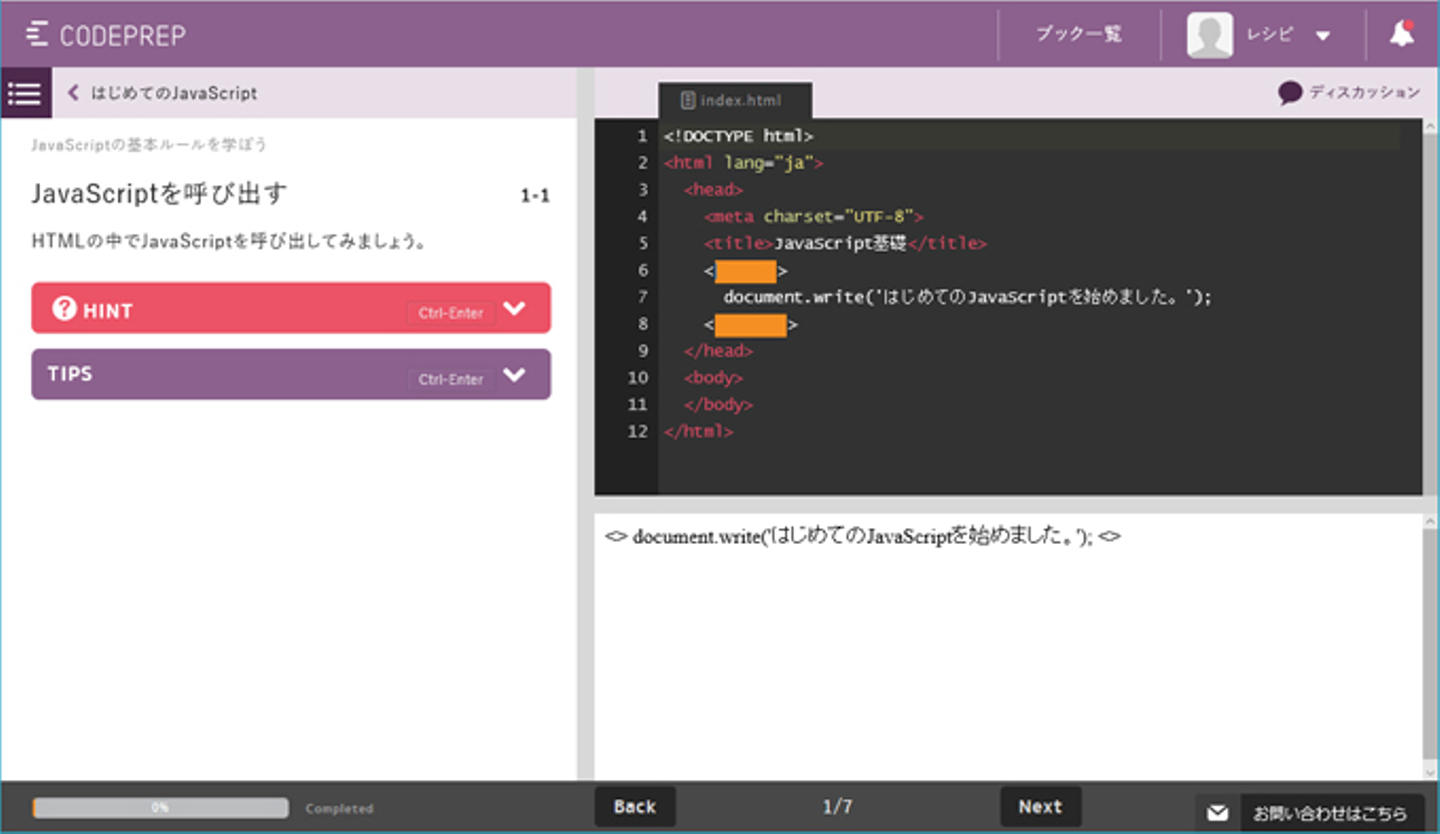 コードプレップは穴埋め形式で学習する学習ドリルのようなプログラミング学習サイトです。