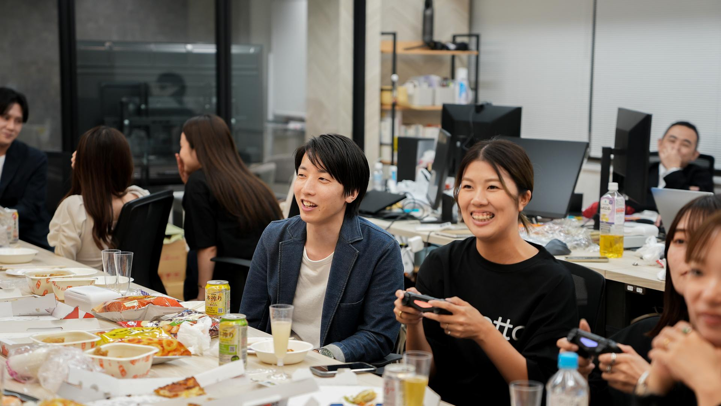 分社式の後には、社内でパーティーを開催!これまでの真剣な雰囲気とは一変、こういったフランクな場面では、メンバー全員が笑顔で参加できるのもコネットの良いところ。これからもコネットの持つ良さや楽しい雰囲気はそのままに、さらに進化させていきたいですね!