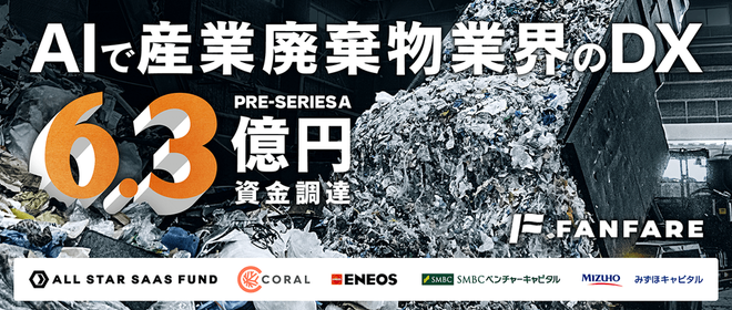 AIで産業廃棄物業界のDXを実現する「ファンファーレ」、総額6.3億円のプレシリーズA資金調達を実施