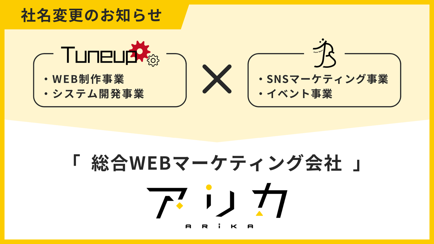 この度、株式会社チューンアップは株式会社Phase Spaceと合併し、令和7年4月1日より新たに「株式会社アリカ」としてスタートする運びとなりました。