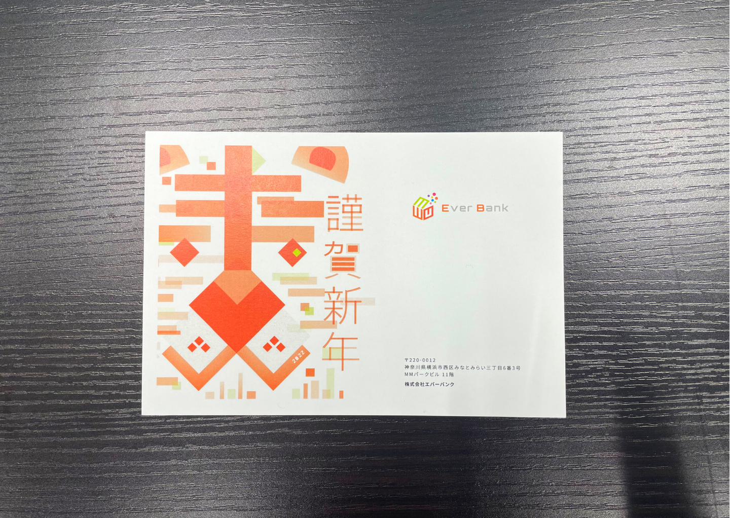 Flat Holdingsの年賀状と合わせて、CALL FORCEとEver Bankの年賀状もデザインは大きく変えず、それぞれのカラーで作成しました。