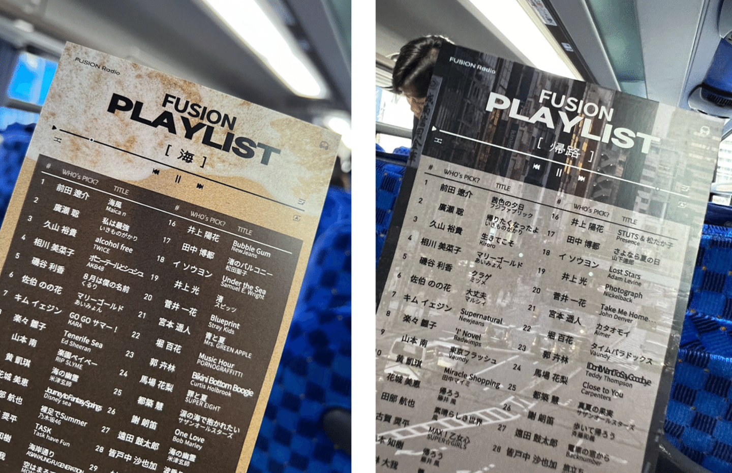 帰りのバスでは皆さんが疲れていると思い、各々好きな時間が過ごせるように「FUSIONラジオ」を流しました。