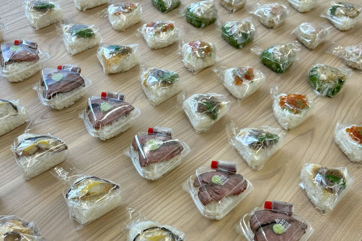 朝ごはんは「おにぎりは無限の宇宙」というコンセプトを掲げるTARO TOKYO ONIGIRIさん(https://www.tarotokyo.jp/)の商品を購入させていただきました。朝早くから参加者のみんなの気分を上げられるよう、具材やお米の種類もこだわって選定させていただきました。並べ方も参加者が味を選びやすいよう工夫をしています。