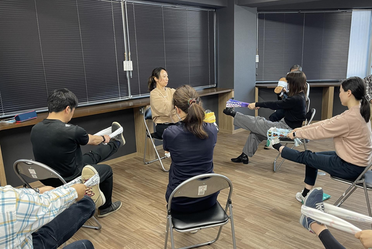 2024年3月に開催された「セルフケア勉強会」では、「仕事の資本である身体をどのようにケアすればよいのか」という視点で、デスクワークの私たちにぴったりな「椅子を利用したストレッチ」を外部講師の方に紹介して頂きました!