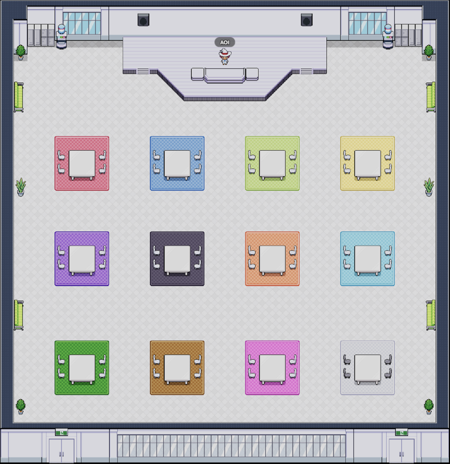 AOIでは、1人で黙々と受験対策をするのではなく、自分と向き合い、やりたいことについて考え、メンターや仲間との対話や議論を重ねることで、新たな発見をしたり、自分らしい人生についての思考を深めたりすることに重きをおいています。そのため、AOIのメタバース校では、オンライン上でも偶発的なコミュニケーションが生まれやすいよう、「開放的で明るい空間」を軸として制作しています。授業スペースから自習スペースへ向かう時にメンタールームや交流スペースの横を通ることで、メンターや仲間とすれ違う設計にして、話をするきっかけが生まれやすい空間をつくっています。