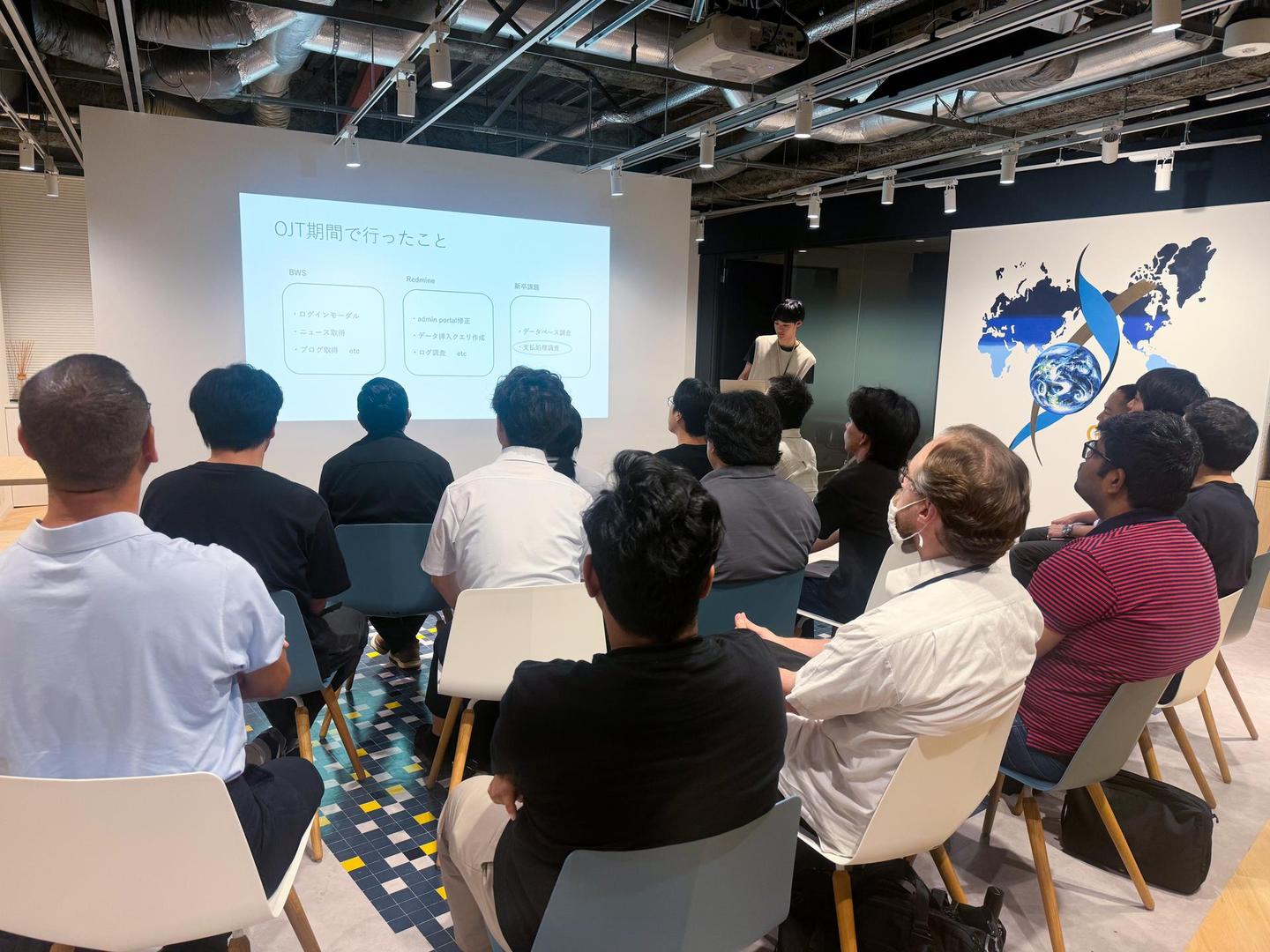 24新卒のメンバーが入社してから数か月が経ちました。各メンバーにはOJT担当がつき、それぞれの業務を学びながら日々成長しています。この度、新卒メンバーの研修成果を披露する場として、6月26日にエンジニア新卒発表会を開催いたしました!