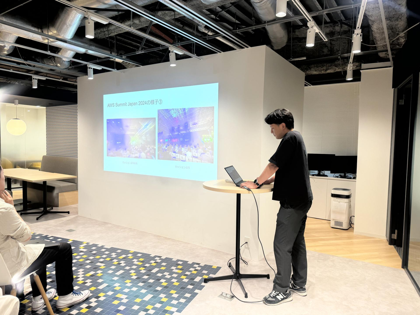 その後、先日開催されたAWS Summit Japan(※1)に参加したメンバーより、当日のカンファレンスの様子や、生成AIなどの最新のAWSテクノロジーに関する報告がありました。